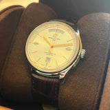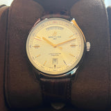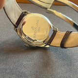 Průměr 40 mm. Pouzdro z nerezové oceli. Luneta z hladké oceli. Stříbrný ciferník bez číslic. Zlaté ruce a značky. Luminiscenční ruce. Safírové sklíčko. Automatický pohyb. Breitling ráže 45. 38hodinová rezerva chodu. Masivní ocelová zadní strana pouzdra s emblémem Breitling. Hnědý kožený náhradní řemínek, není originál. Ocelová skládací spona s emblémem Breitling.