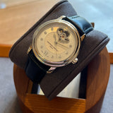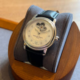 Průměr 34 mm. Pouzdro z nerezové oceli. Luneta z hladké oceli. Bílý ciferník se otevírá ve 12 hodin a římské číslice v 6 hodin. Diamantové indexy. Safírové sklíčko. Automatický pohyb. Otevřete zadní kryt. Náhradní černý kožený řemínek, není originální Frédérique Constant. Ocelová spona s emblémem Frédérique Constant.