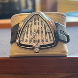 Průměr: 42 mm * 45 mm. Tloušťka: 11.38 mm. Pouzdro z nerezové oceli. Hladká luneta s viditelnými mikroskopickými škrábanci. Skeletový ciferník bez číslic. Luminiscenční ručičky. Safírové sklo. Automatický strojek H-10-S. 80hodinová rezerva chodu. Průhledné dýnko. Originální černý kaučukový řemínek od... HamiltonSpona z nerezové oceli s Hamilton symbol.