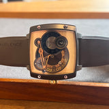 Průměr 45 mm * 43.5 mm. Pouzdro z růžového zlata. Růžový ciferník s arabskými číslicemi. Safírové sklíčko. Automatický pohyb. Kalibr HL S 00. Průhledné zadní pouzdro. Originální hnědý gumový pásek Hautlence. Skládací spona s emblémem Hautlence.