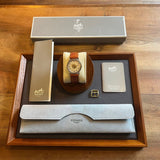 Obsah: Hodinky, krabička, vnější krabice, uživatelská příručka, originální Hermès spona na špendlík, záruční list.
