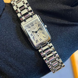 Průměr 32 x 20.80 mm. Quartz strojek. Pouzdro a náramek z nerezové oceli. Safírové sklíčko. Stříbrný ciferník s římskými číslicemi. Pevné pouzdro. Koruna s emblémem Longines. Originální dvojitá skládací spona Longines.