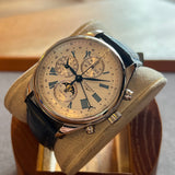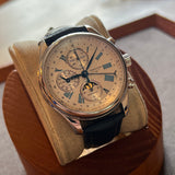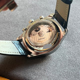 Funkce: Hodiny, minuty, malé sekundy, chronograf, měsíční fáze v 6 hodin, zobrazení data, zobrazení dne a měsíce ve 12 hodin.