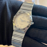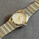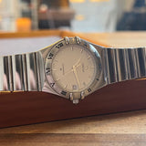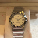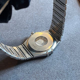 Průměr 33.5 mm. Pouzdro a náramek z nerezové oceli. Stříbrný ciferník bez číslic. Luminiscenční ručičky a indexy. Klenuté safírové sklo s antireflexní úpravou. Quartz strojek. Posuvná přezka s... Omega symbol.
