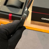 Mouvement à remontage automaticique Grand guichet jour-date développé par Oris. Ráže Oris 752, základna SW 220-1. Réserve de marche 38 hodin. Frekvence 28.800 A/h. Rubis 26.