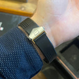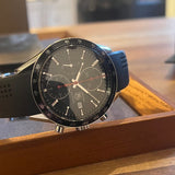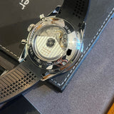 Koruna s emblémem Tag Heuer. Originální černý gumový pásek Tag Heuer. Originální skládací spona Tag Heuer.