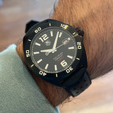 Průměr 41 mm. Černé pouzdro z PVD oceli. Černý rámeček z PVD oceli. Černý ciferník s arabskými číslicemi. Svítící ručičky a indexy. Safírové sklíčko. Automatický pohyb. Ráže 5. Rezerva chodu 38 hodin. Zadní průhledné pouzdro. Gumový pásek Tag Heuer. Ocelová spona s emblémem Tag Heuer.