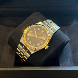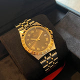 Průměr 34 mm. Tloušťka 10 mm. Pouzdro z leštěné a saténově upravené oceli. Luneta z oceli se žlutým zlatem. Čokoládový ciferník s římskými číslicemi. Zlaté ručičky a indexy. Safírové sklo. Automatický strojek. Ráž T601. 38hodinová rezerva chodu. Masivní ocelové dýnko s Tudor emblém. Náramek z oceli a žlutého zlata. Skládací spona z oceli s Tudor symbol.